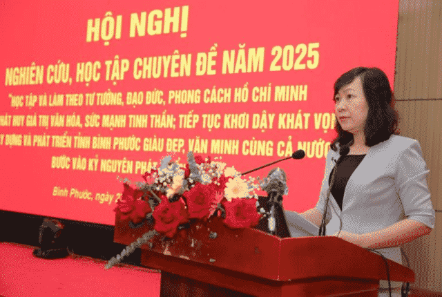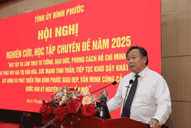 Sáng 27-2, Tỉnh ủy Bình Phước tổ chức Hội nghị nghiên cứu, học tập và làm theo tư tưởng, đạo đức, phong cách Hồ Chí Minh chuyên đề năm 2025 về “Phát huy giá trị văn hóa, sức mạnh tinh thần; tiếp tục khơi dậy khát vọng xây dựng và phát triển tỉnh Bình Phước giàu đẹp, văn minh cùng cả nước bước vào kỷ nguyên phát triển mới”.